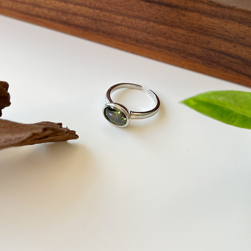 Product information:Color: K950 olive green stone ring (white gold color)Applicable people: WomenSize: Adjustable openingStyle: Women'sMaterial: 925 silverShape: GeometricPopular elements: IrregularStyle: Ins style