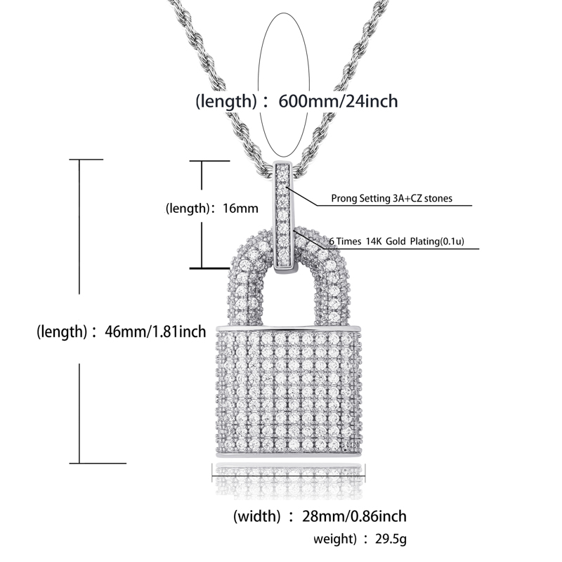 Material: CopperStyle: European and AmericanStyle: UnisexShape: lockTreatment process: micro-inlay platingColor: gold, silver, two-color