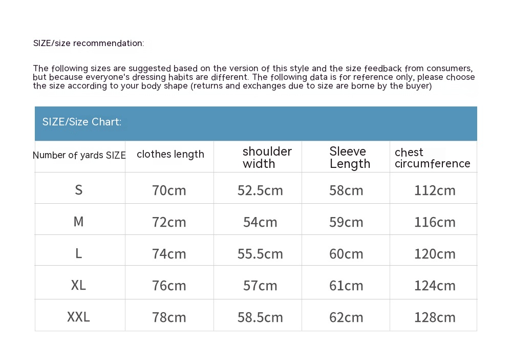 1. Asian sizes are 1 to 2 sizes smaller than European and American people. Choose the larger size if your size between two sizes. Please allow 2-3cm differences due to manual measurement. 2. Please check the size chart carefully before you buy the item, if you don't know how to choose size, please contact our customer service. 3.As you know, the different computers display colors differently, the color of the actual item may vary slightly from the following images.