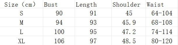 1. Asian sizes are 1 to 2 sizes smaller than European and American people. Choose the larger size if your size between two sizes. Please allow 2-3cm differences due to manual measurement. 2. Please check the size chart carefully before you buy the item, if you don't know how to choose size, please contact our customer service. 3.As you know, the different computers display colors differently, the color of the actual item may vary slightly from the following images.