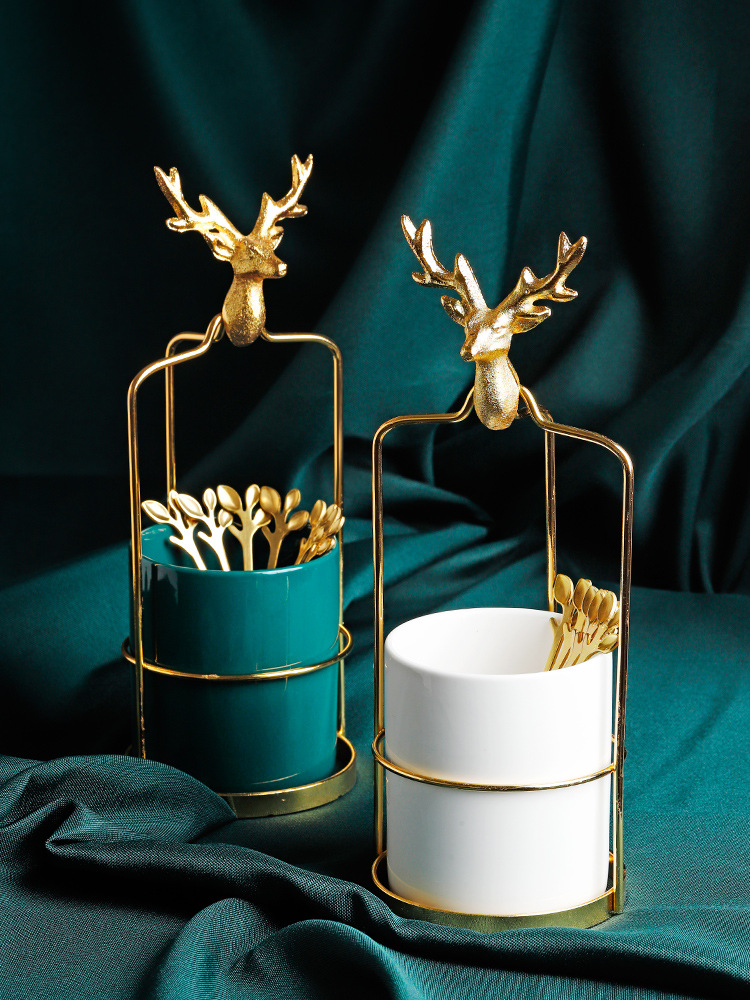 3style: Nordic deer gold frame + emerald light luxury jar + fruit fork × 6,