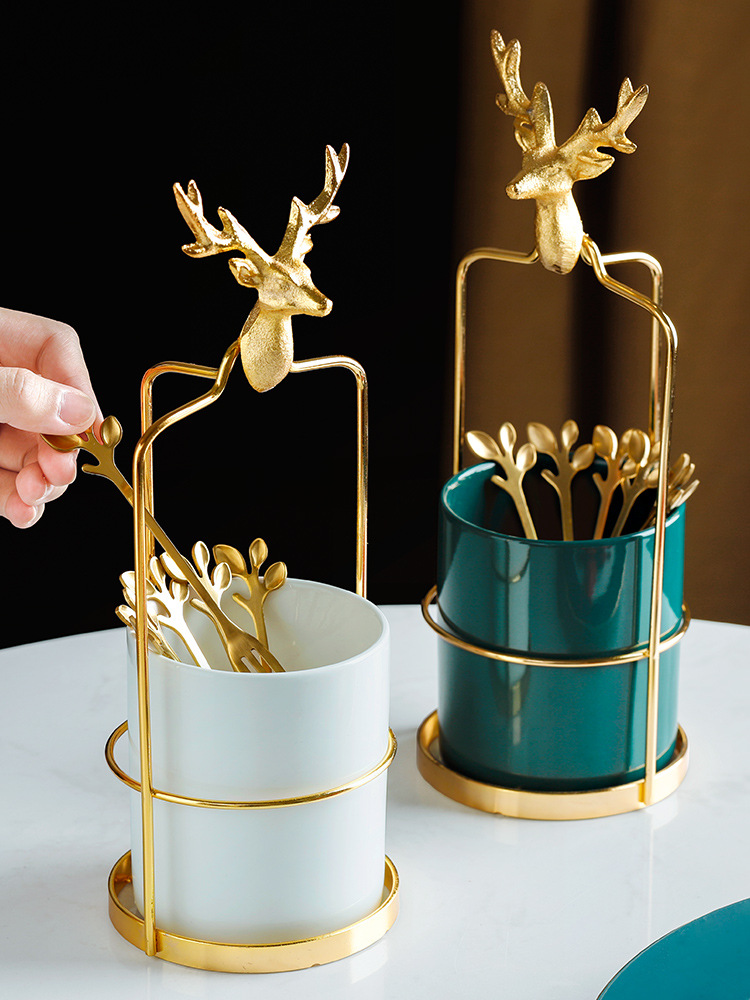 4style: Nordic deer gold frame+white light luxury jar+fruit fork×6,