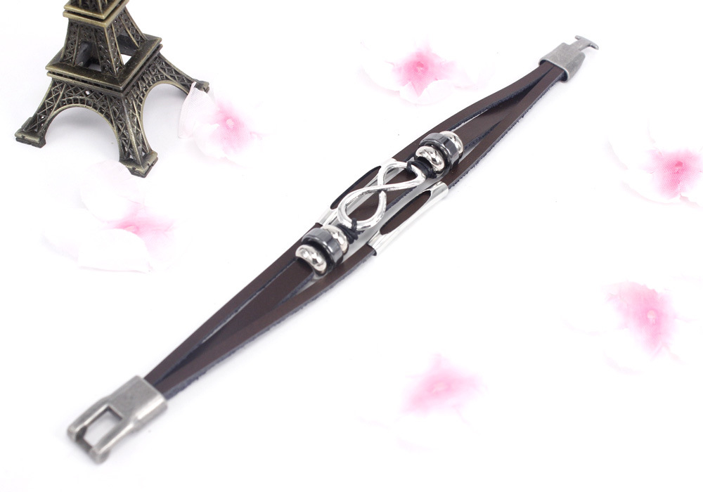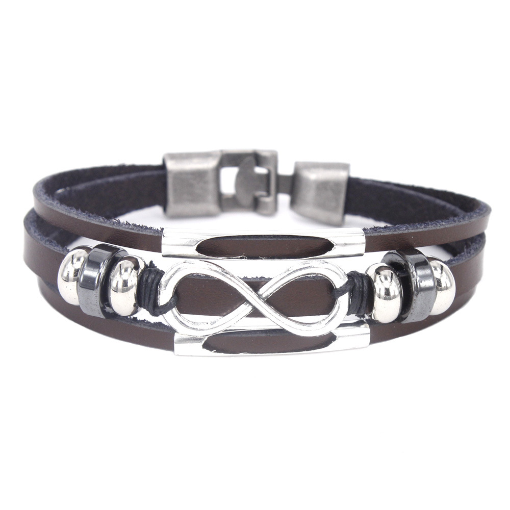 Jewelry Versatile Multi-Layer Infinity 8 Words Men'S Leather Bracelet Woven Vintage Leather Bracelet