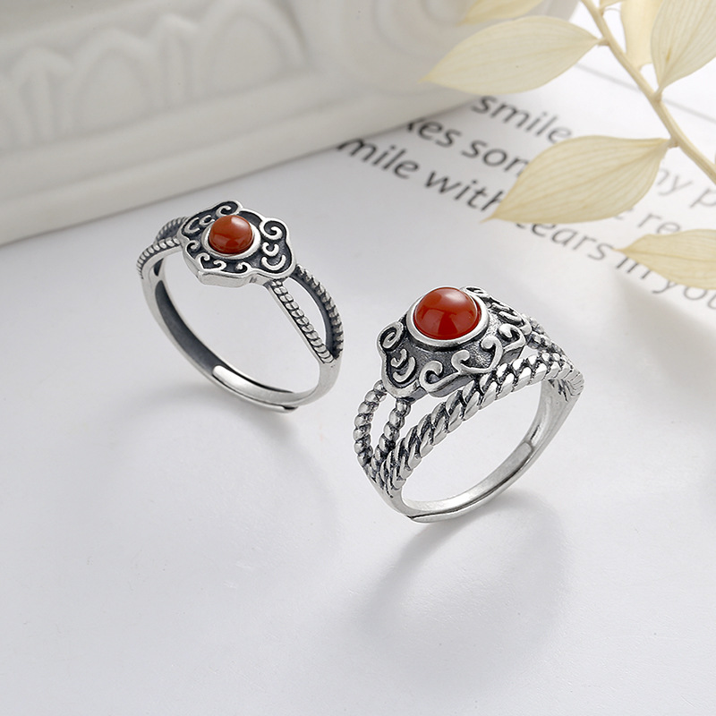 Product information:Type: open mouthProcessing process: OldColor: SliverApplicable people: womenSize: adjustable openingMaterial: SilverPopular elements: RuyiStyle: antique styleSize information: Ring face width A: 10mm B: 13.5mm