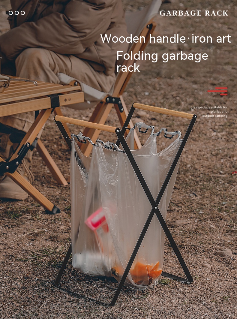 Goods: wooden handle iron folding trash rack
