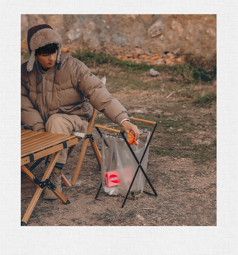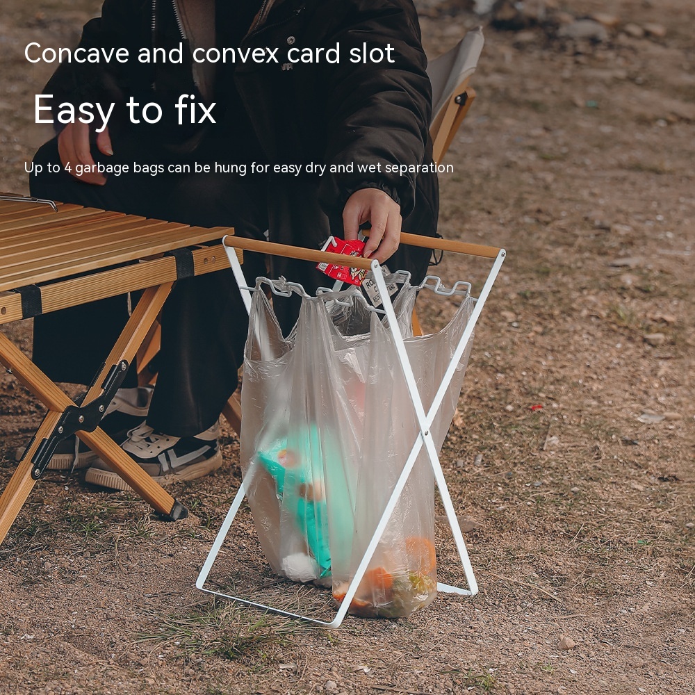 Outdoor Wooden Handle Wrought Iron Garbage Storage Hanger