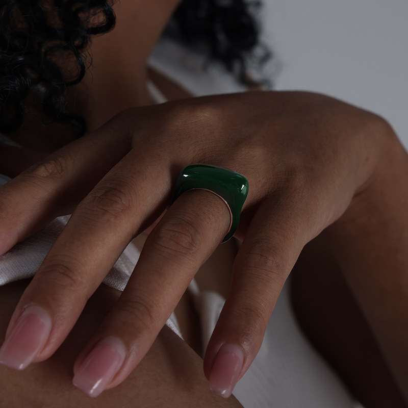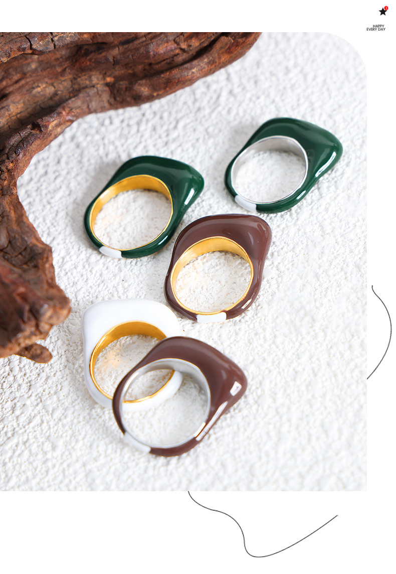 Color: A497-white drop oil steel ring, A497-white drop oil gold ring, A497-Brown drop oil steel ring, A497-Brown drop oil gold ring, A497-Green drop oil steel ring, a497-green oil dripping gold ring