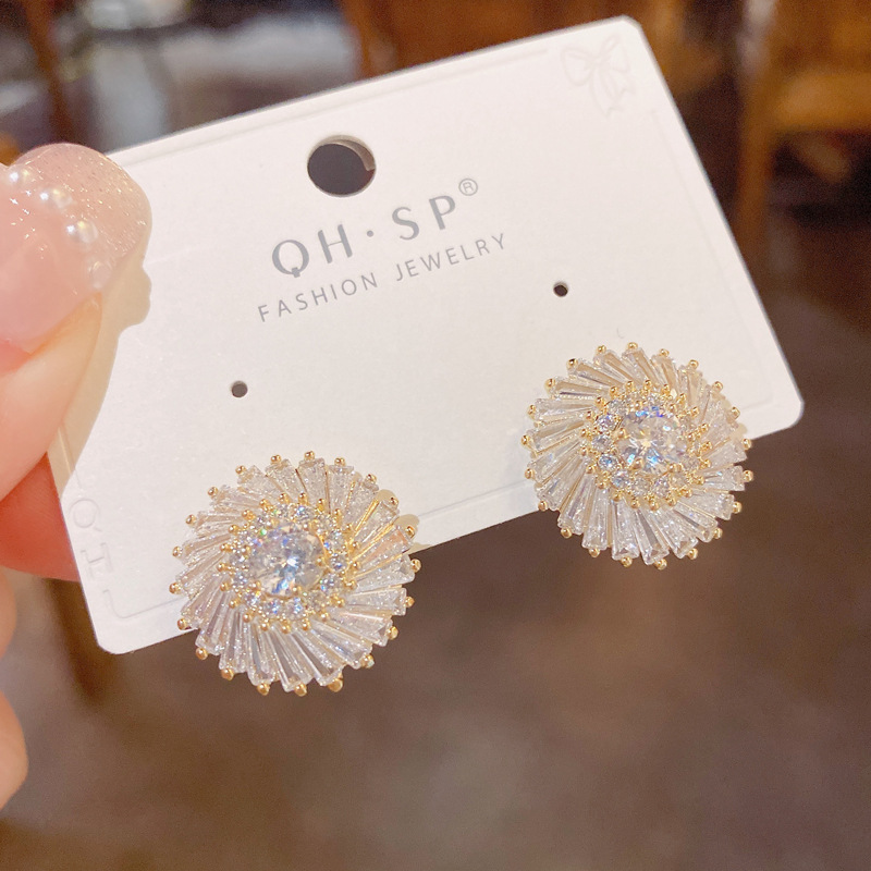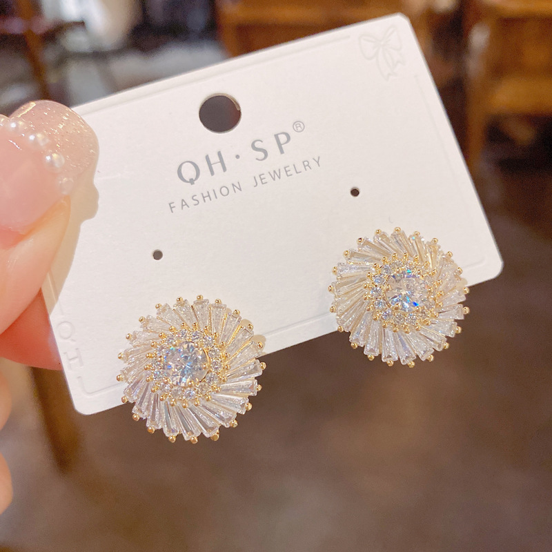 Color: SUNFLOWER zircon ear studs (thick real gold color retention)