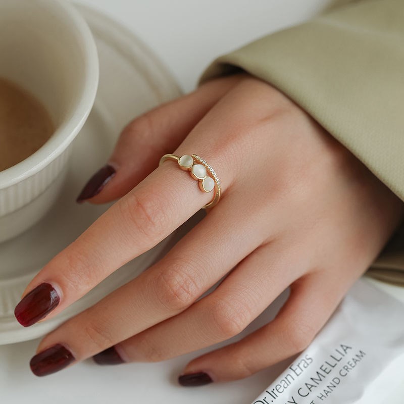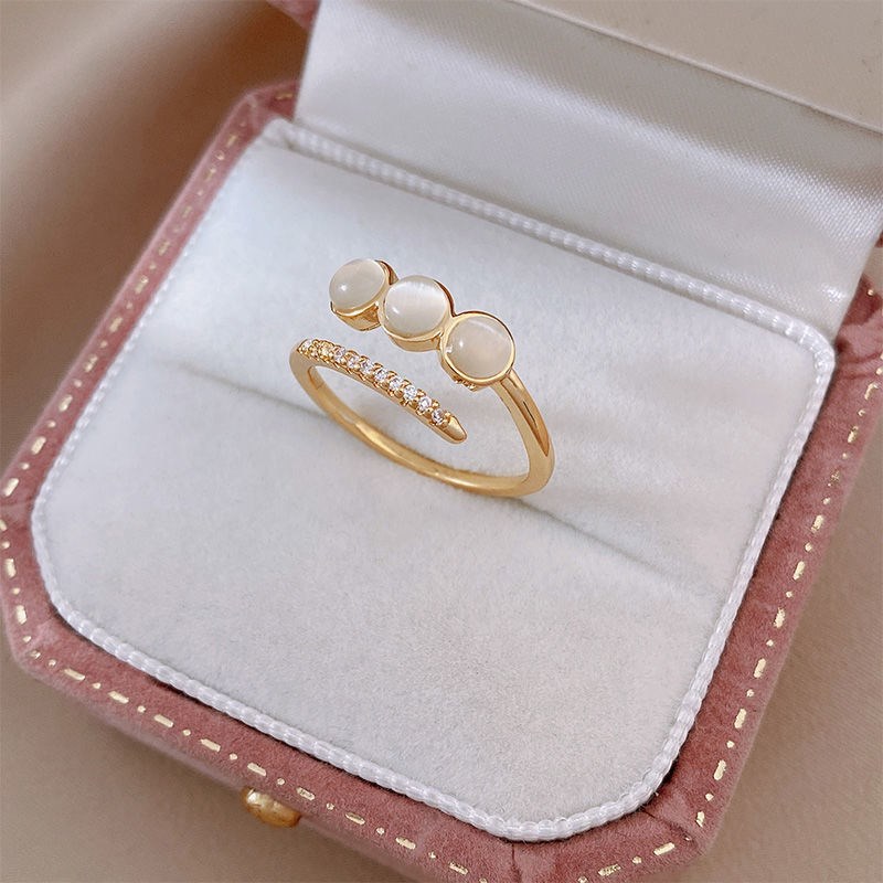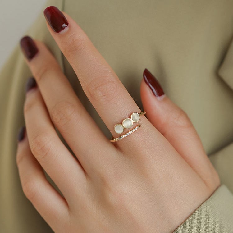 Micro Set Zircon Opal Delicate Women's Index Ring
