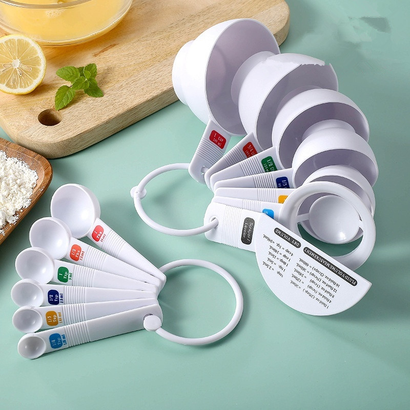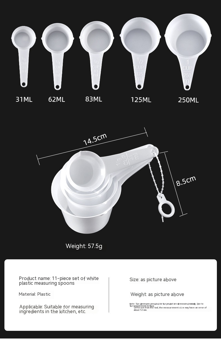 Product information:Specifications: White 11-piece set, colorful 12-piece set (random color arrangement), Rainbow measuring spoon 4-piece set (random color arrangement) Style: modern simplicity Category: baking measuring spoon measuring cup