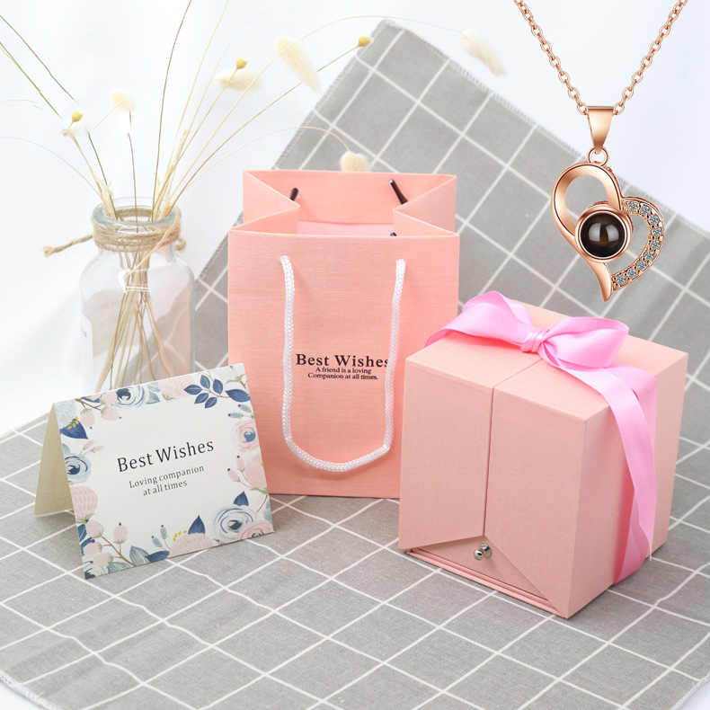 Set2:Double Ring/Necklace Box (16 Flowers) + White Bag+gold necklace(CJLX140281619SH)