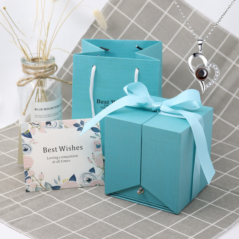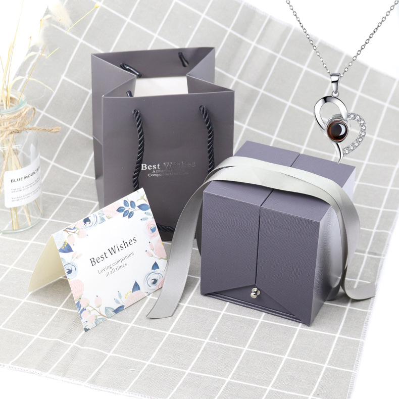 Set1:Double Ring/Necklace Box (16 Flowers) + Blank Bag+silver necklace(CJLX140281613MN)