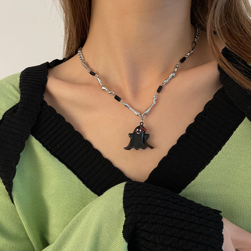 Product information:Color: Black Ghost irregular necklaceApplicable people: womenPendant material: AlloyChain style: curb necklaceMaterial: titanium steelModeling: cartoon charactersStyle: sweet and cool