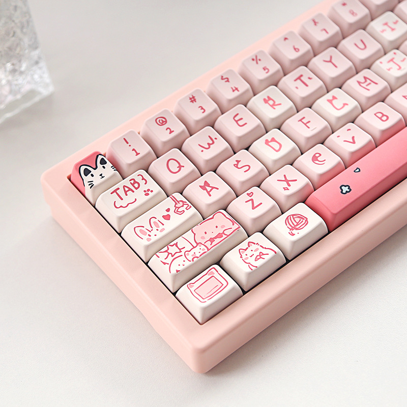 Product information: Key cap name: Pink peering Height: Key cap Key cap quantity: 148 Key cap process: five-sided sublimation Not supported: keyboard such as Razer pirate ship dearyou Balance Bar