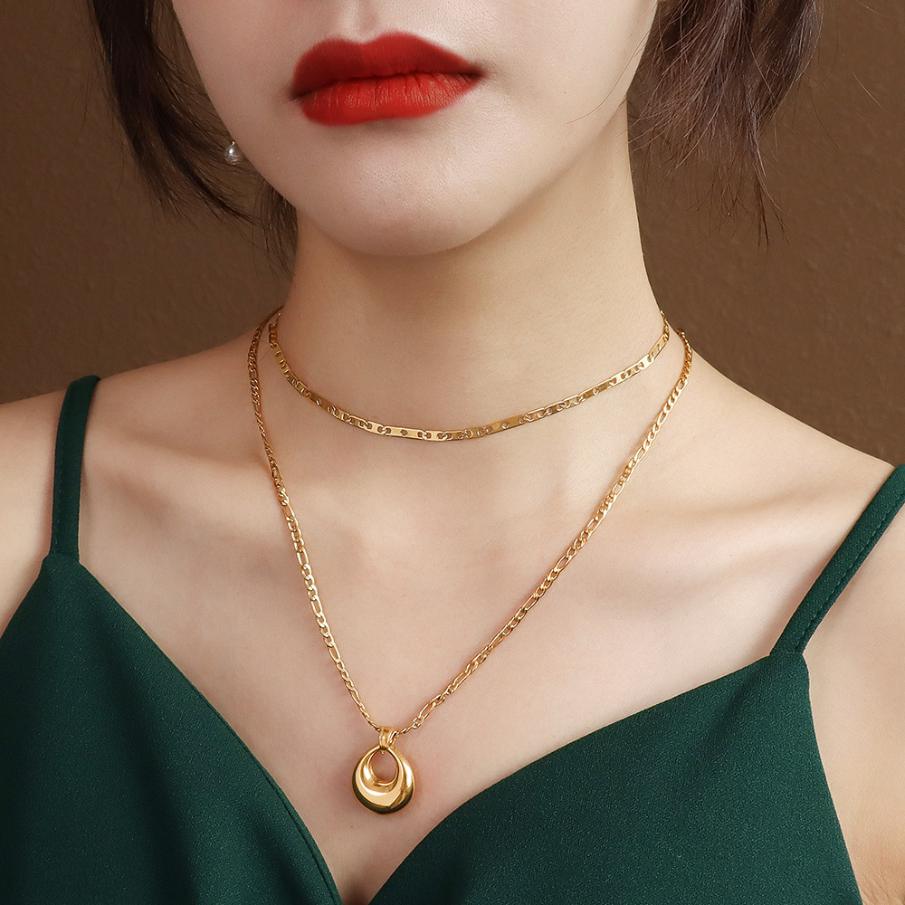Product information:Treatment Process: Electroplating Color: P333 Gold 35 5cm Material: titanium steel Shape: Geometry Width: 0.3cm Length: 35 5cm Pendant: 2 * 1.8cm