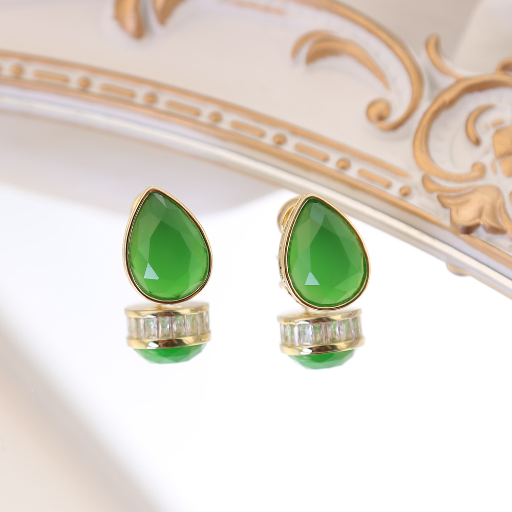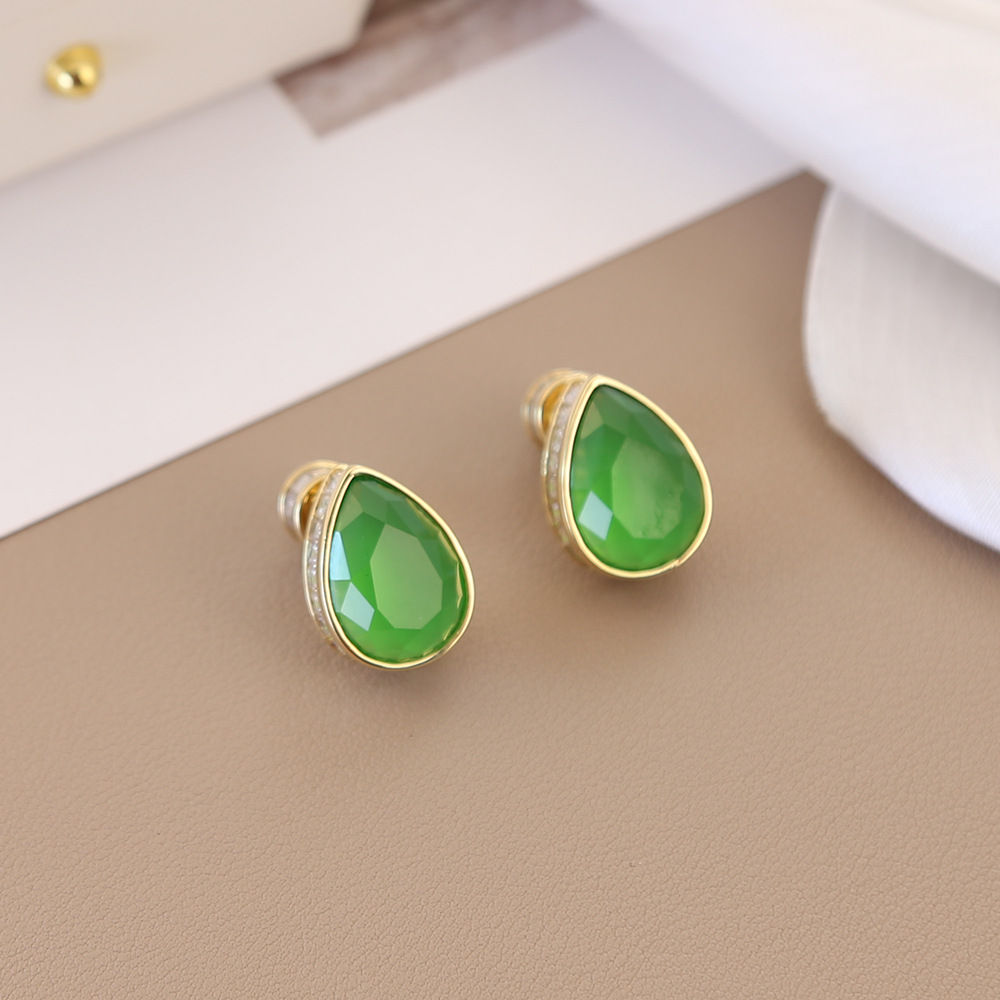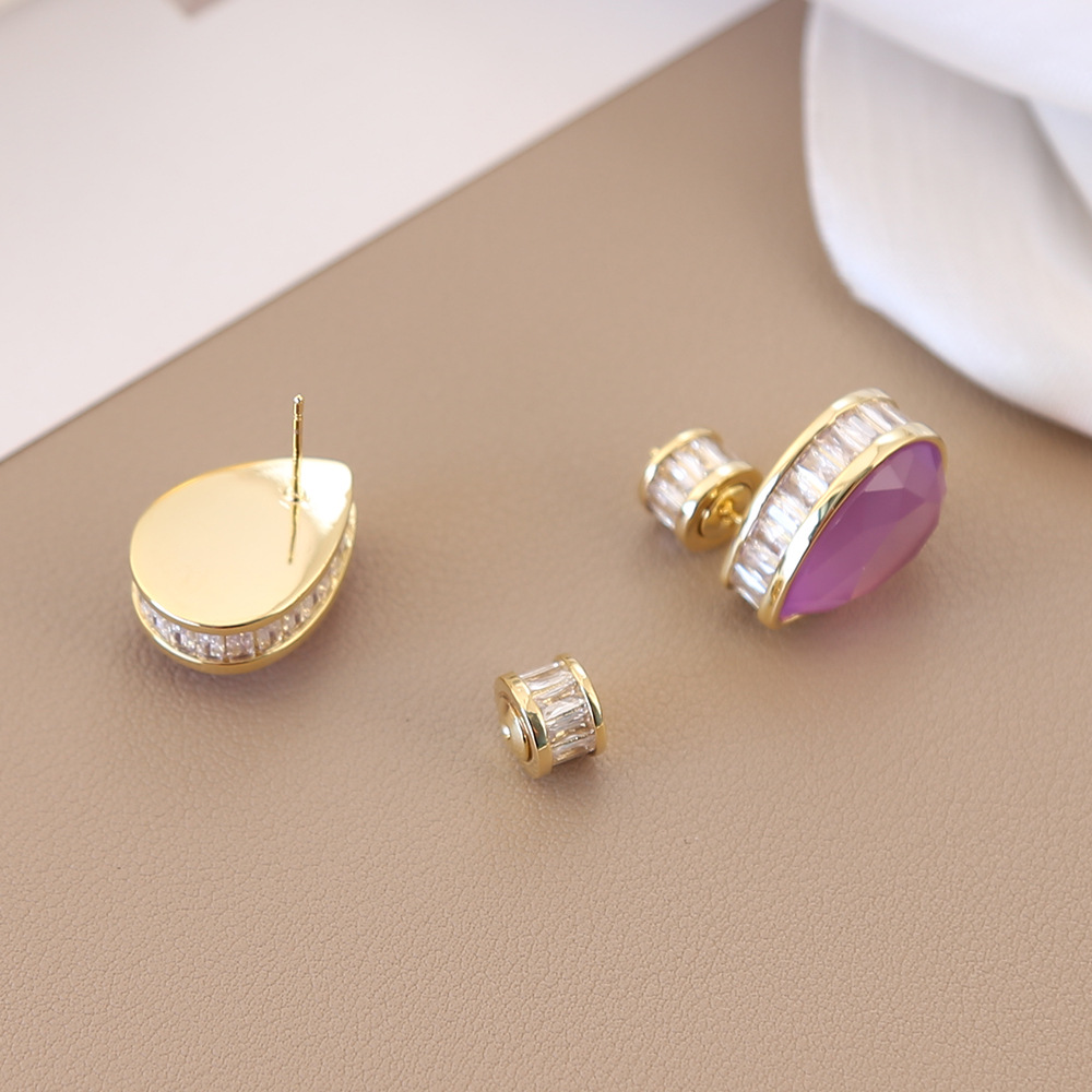 Product information:Treatment Process: inlaid zircon Color: purple zircon, green zircon Applicable population: Female Material: Copper Purity: 14K Shape: drop shape