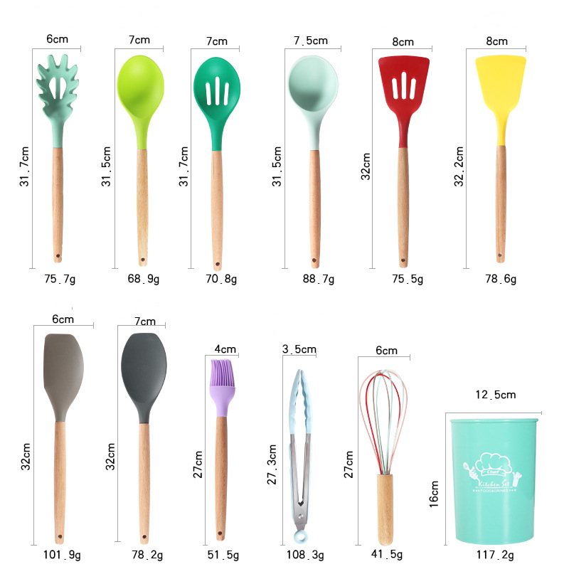 Silicone Kitchenware Set Colorful Storage Bucket Non-stick Pan Scoop