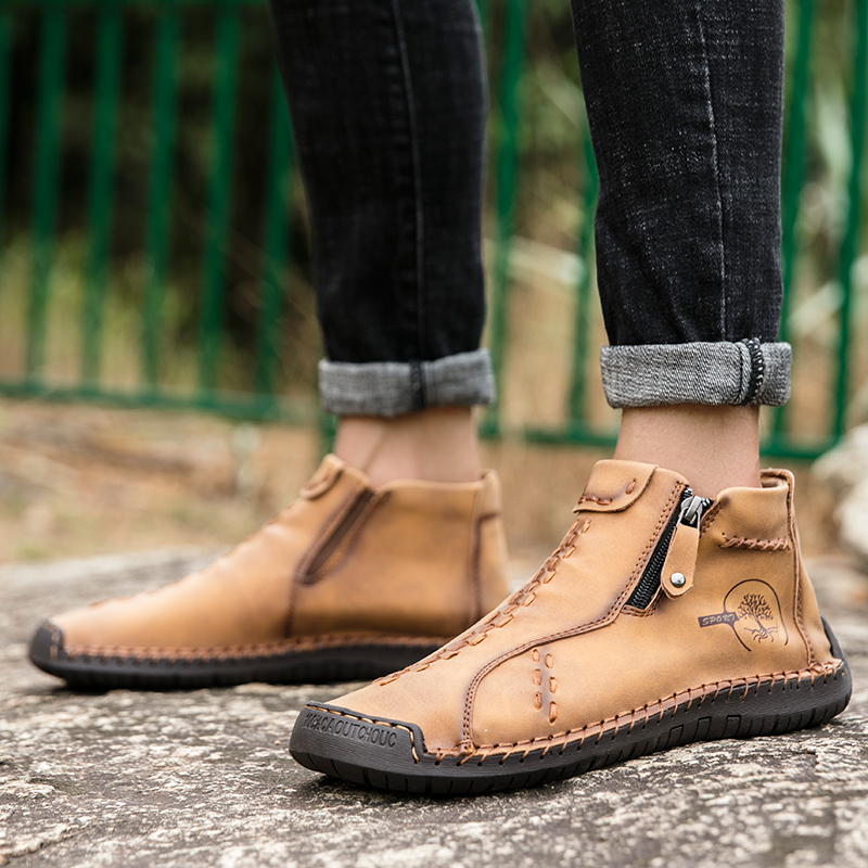 Men's Handmade Boots, Classic Stitching Ankle Boots, Outdoor Casual Zipper Shoes