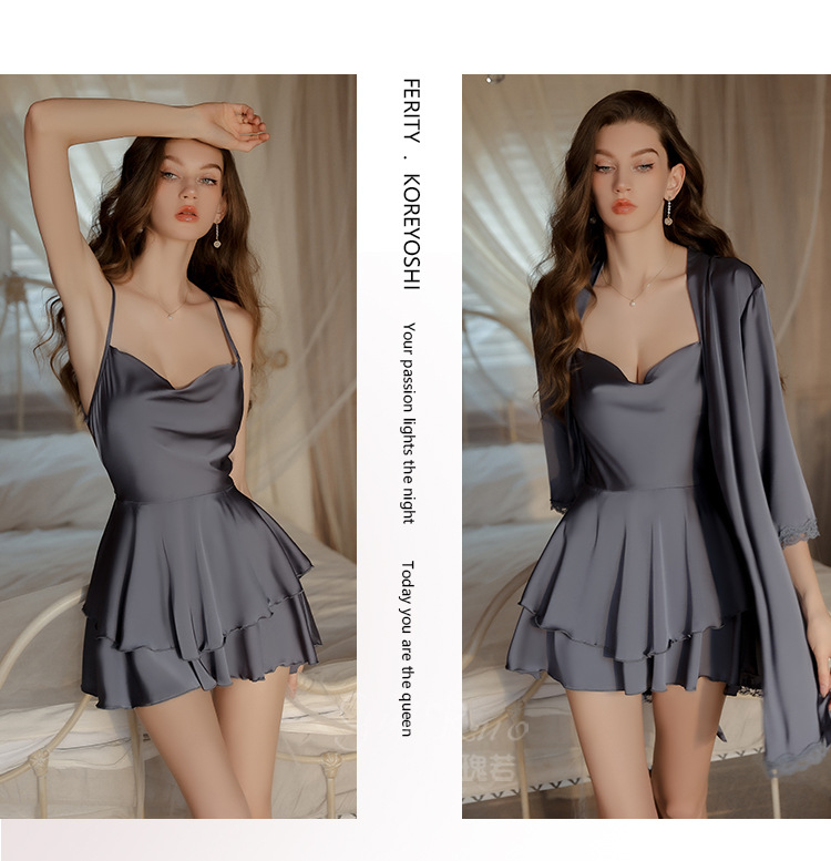 Color: 4431 Black (nightdress),3957 Black (outerwear gown belt),4431 White (nightdress),3957 White (outerwear gown belt),4431 light pink (nightdress),3957 light pink (outerwear gown belt),4431 rose gold (nightdress),3957 rose gold (outerwear gown belt),4431 purplish red (nightdress),3957 purplish red (outerwear gown belt),4431 sky blue (nightdress),3957 sky blue (outerwear gown belt),4431 Moran Gray (nightdress),3957 Moran Gray (outerwear gown belt),4431 Taro purple (nightdress),3957 Taro purple (outerwear gown belt)