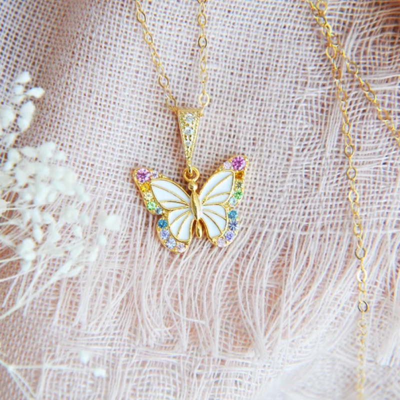 Color: gold butterfly red zirconium, silver butterfly sea blue zirconium, full zirconium drop butterfly necklace, butterfly earrings (simple simple bracelet)