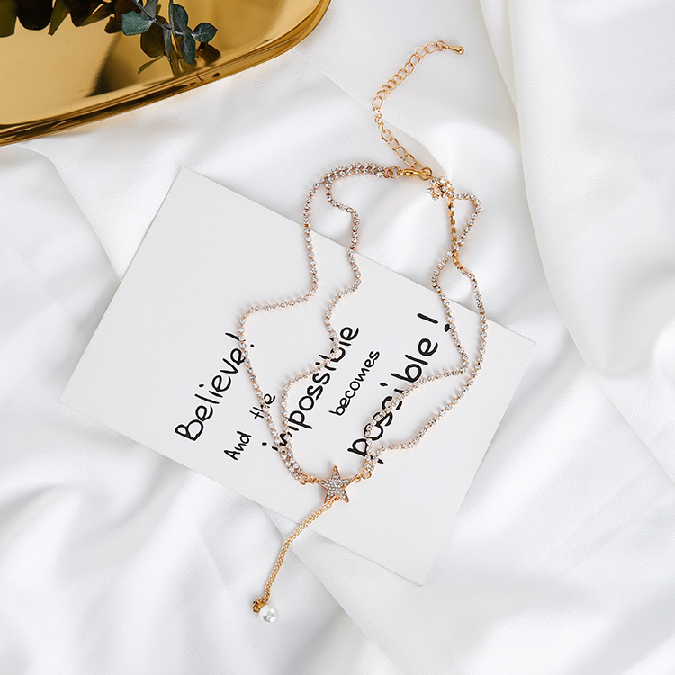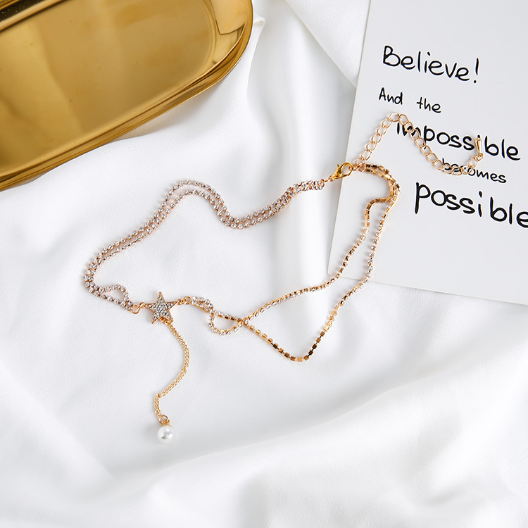 Five-pointed star pearl pendant clavicle neck chain chokerY-shaped tassel double necklace