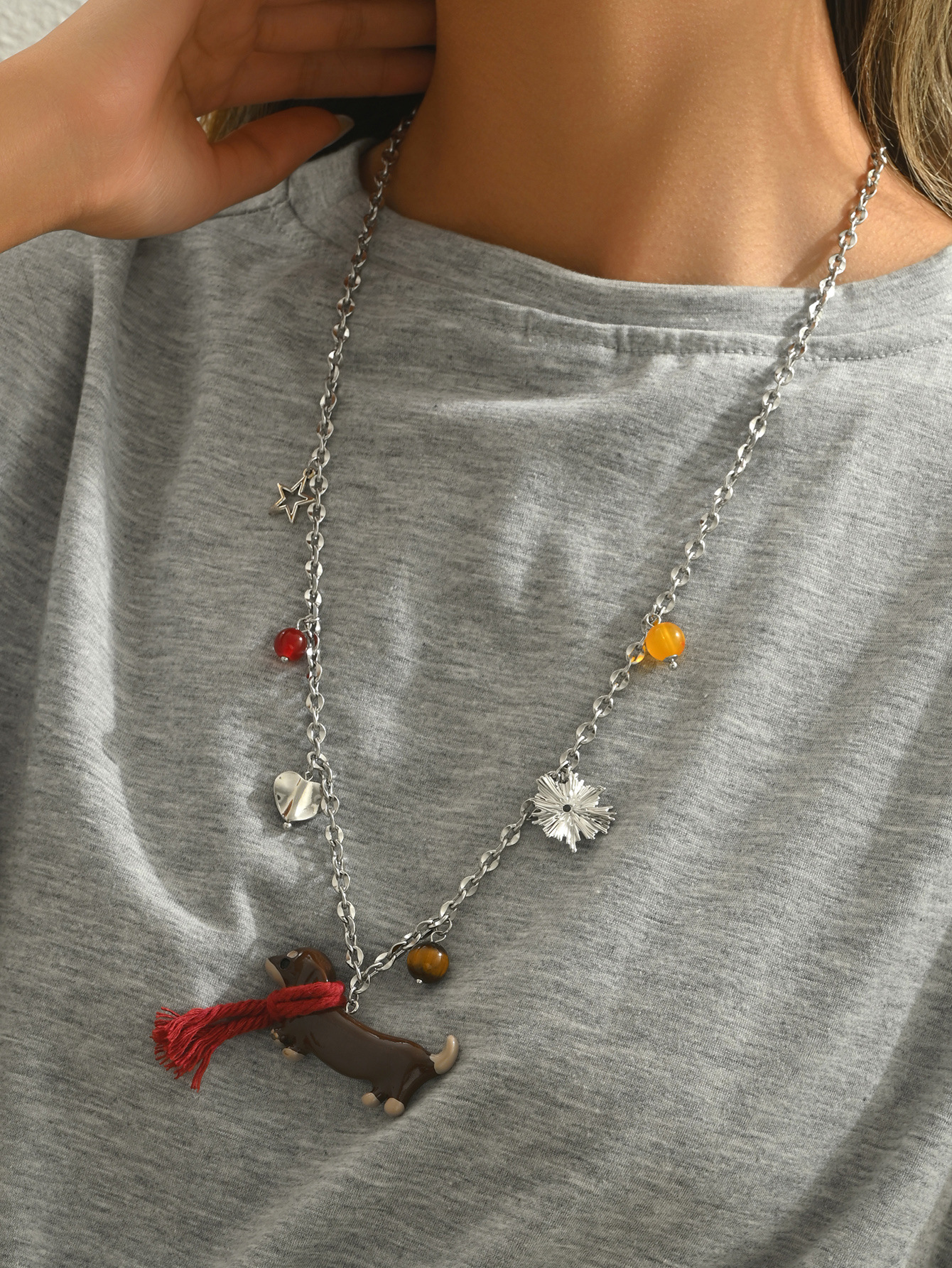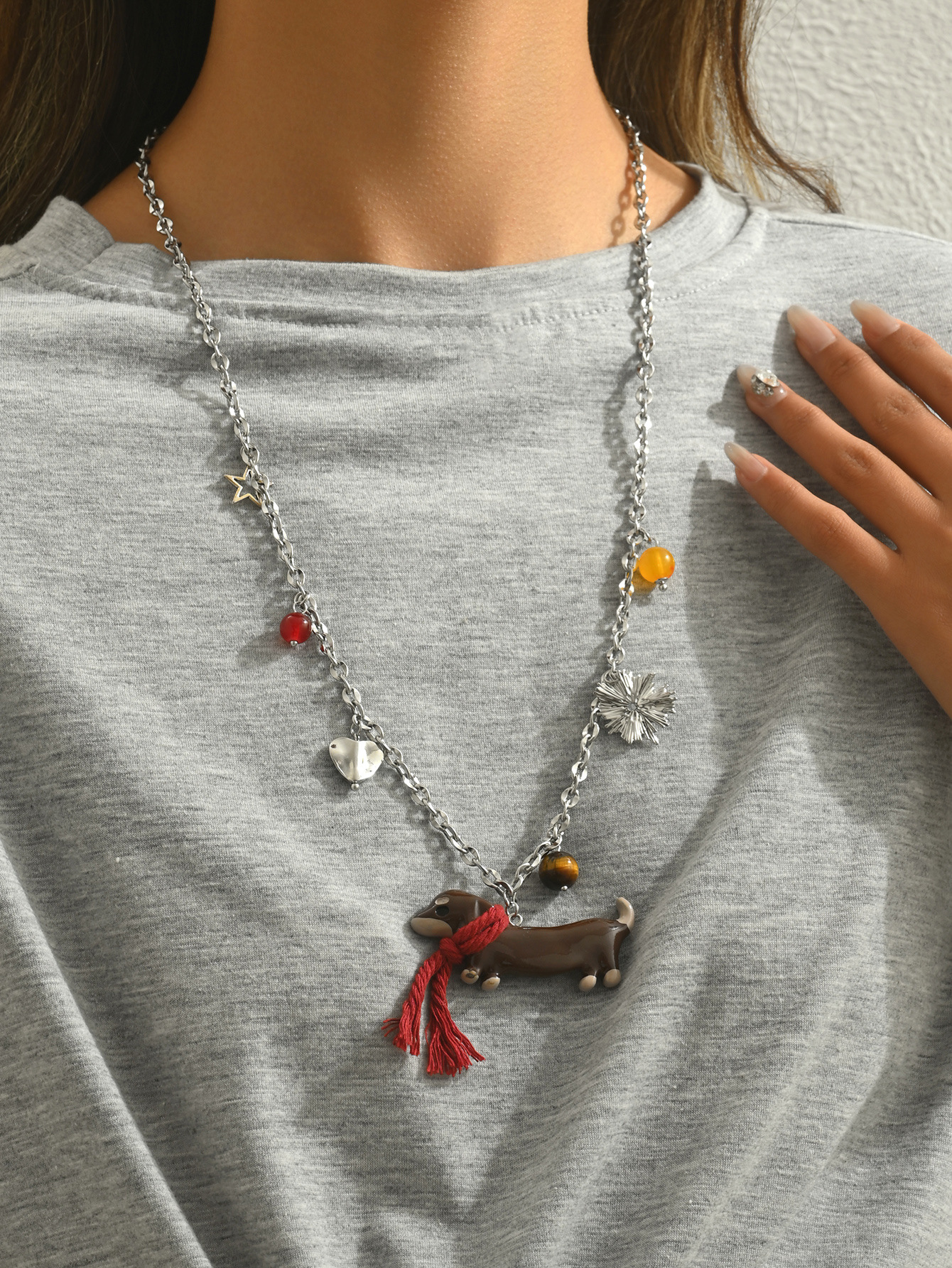 Product information:Treatment Process: Electroplating Color: cute puppy Applicable population: Female Pendant material: Alloy Chain style: clavicle chain Material: Metal Shape: Geometry Popular elements: Ring and line Style: Exaggerated