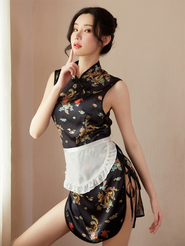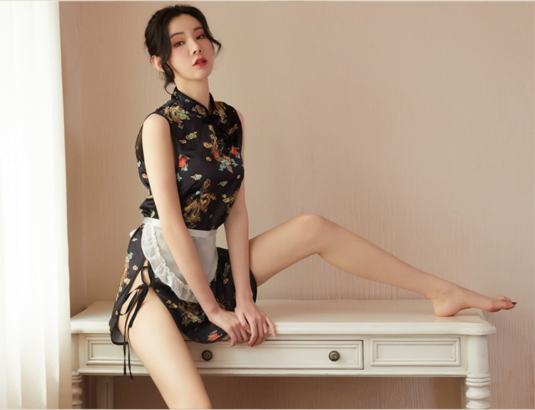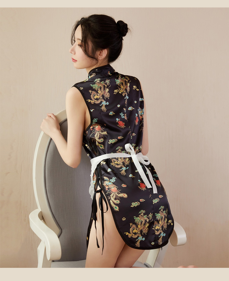Cute Maid Dress-up Split Lace-up Super Short Cheongsam Style Underwear