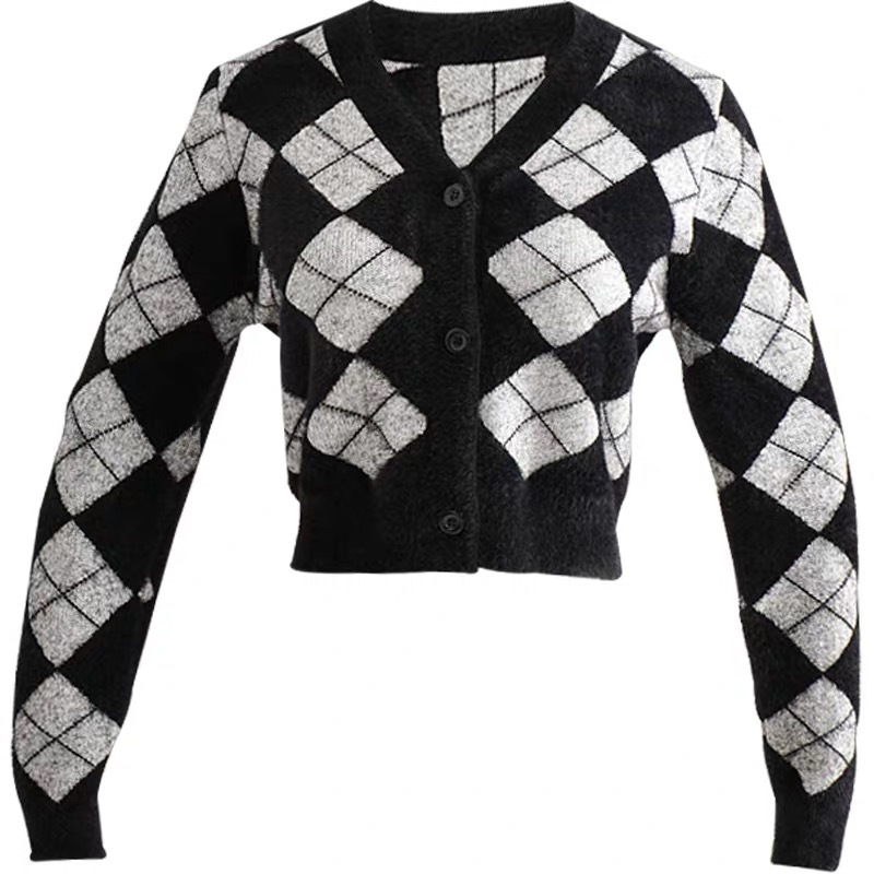 Women's Rhombus Slim Fit Slim V-Neck Long Sleeve Jacket