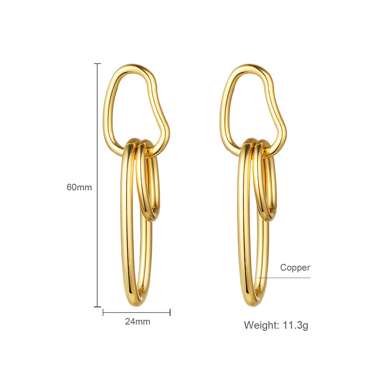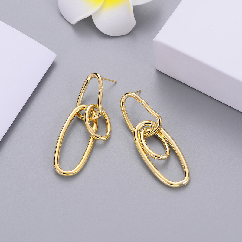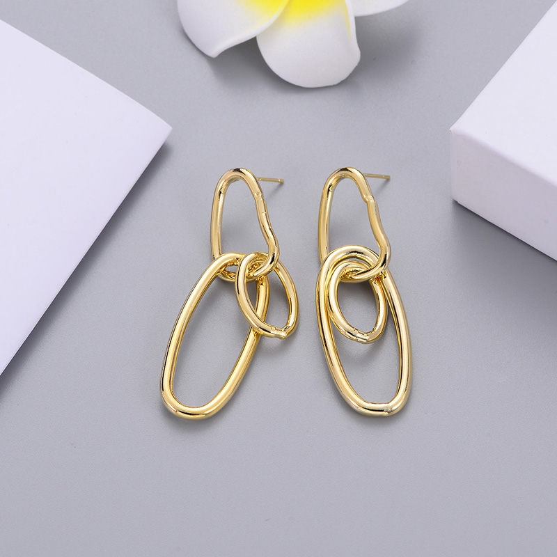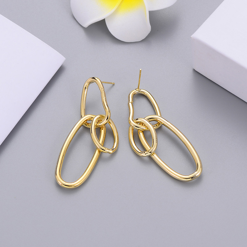Product Information:Style: Europe and AmericaMaterial: CopperTreatment process: electroplatingType: EarringsStyle: Women'sModeling: GeometryPacking List:Earrings*1 pair