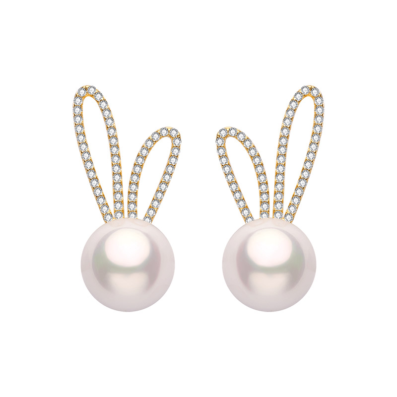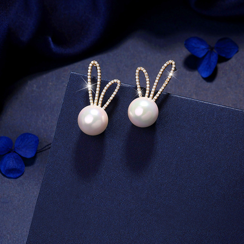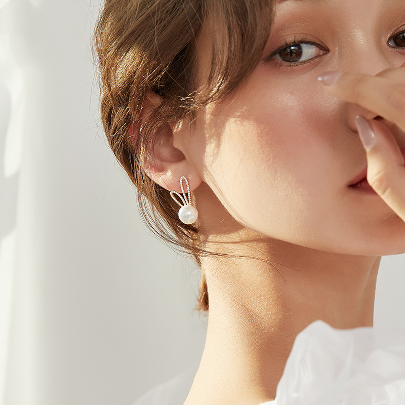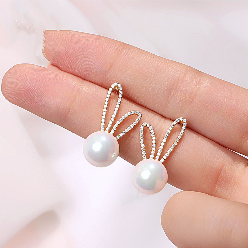 Material: Synthetic cubic zirconia/rhinestoneStyle: sweetColor classification: bunny pearl earringsMosaic material: alloy inlaid artificial gems/semi-precious stones