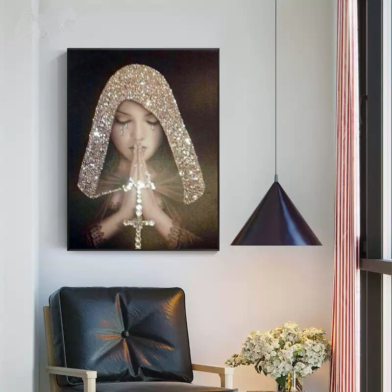Woman Praying Cross Stitch Diamond Embroidery 5D