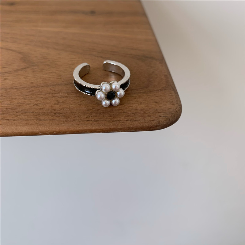 Black drop oil square open ring, black drop oil flower open ring