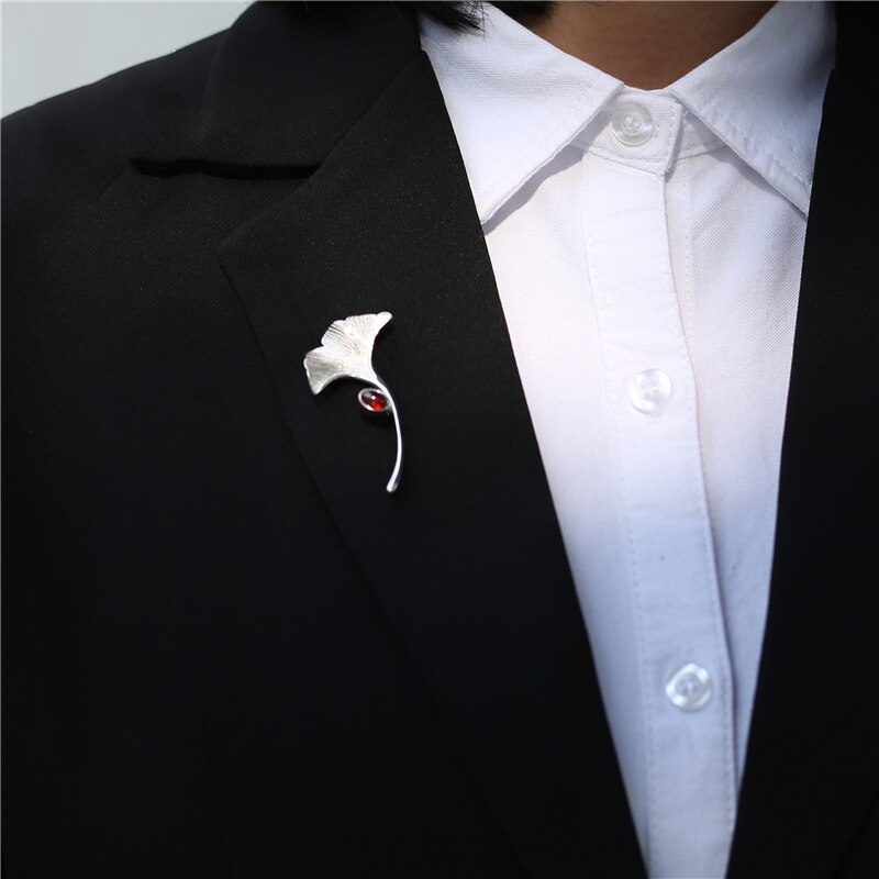 Style: Women'sModeling: leavesTreatment process: electroplatingPackaging: BulkColor: Ginkgo leaf brooch, with chain 55+5cmPurity: 925 silver