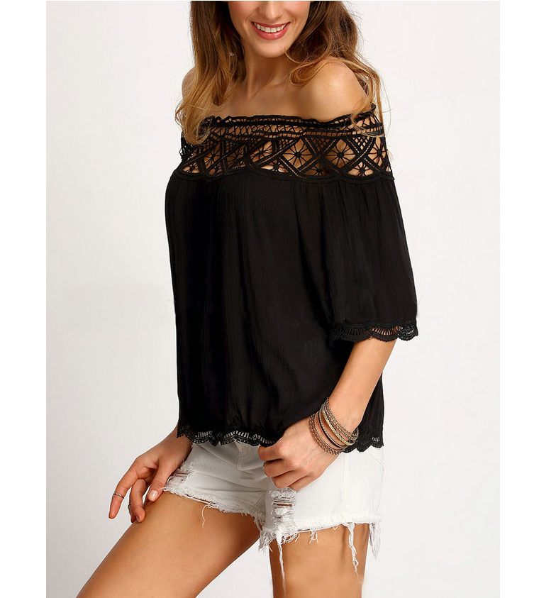 Large size women's collar lace stitching chiffon shirt
