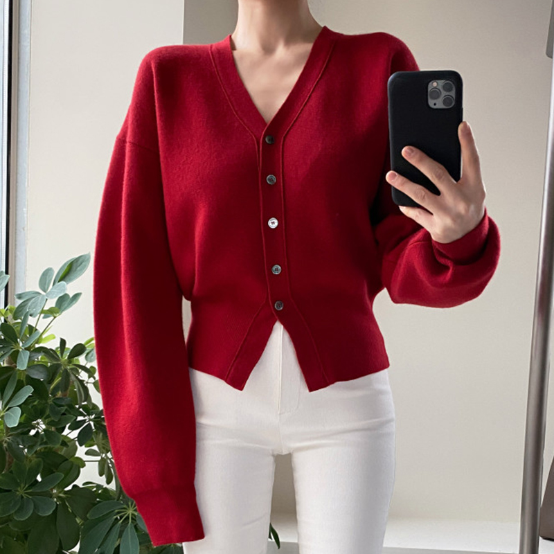 Style: commutingCollar: V-neckFront placket: single breastedColor classification: off white, red, navyVersion: loose