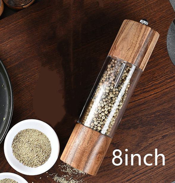 Product Name: manual grinderMaterial: rubber woodType of filling material: sticky materialPlace of origin other gift giving occasions advertising promotionSpecification: straight transparent grinderCapacity: 230mlSize: 21 x 5cm