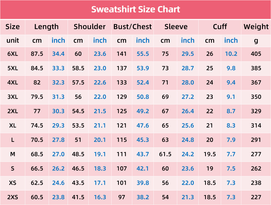 Size: 2XS,XS,S,M,L,XL,2XL,3XL,4XL,5XL