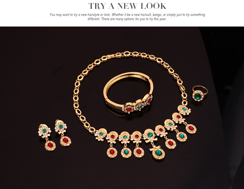 Product information:Material: AlloyProcessing technology: diamondStyle: Women'sSet combination: earrings + item decorations + hand decorationsPattern: Love/Water Drop/BellColor: 18K gold/61154126Packing list: