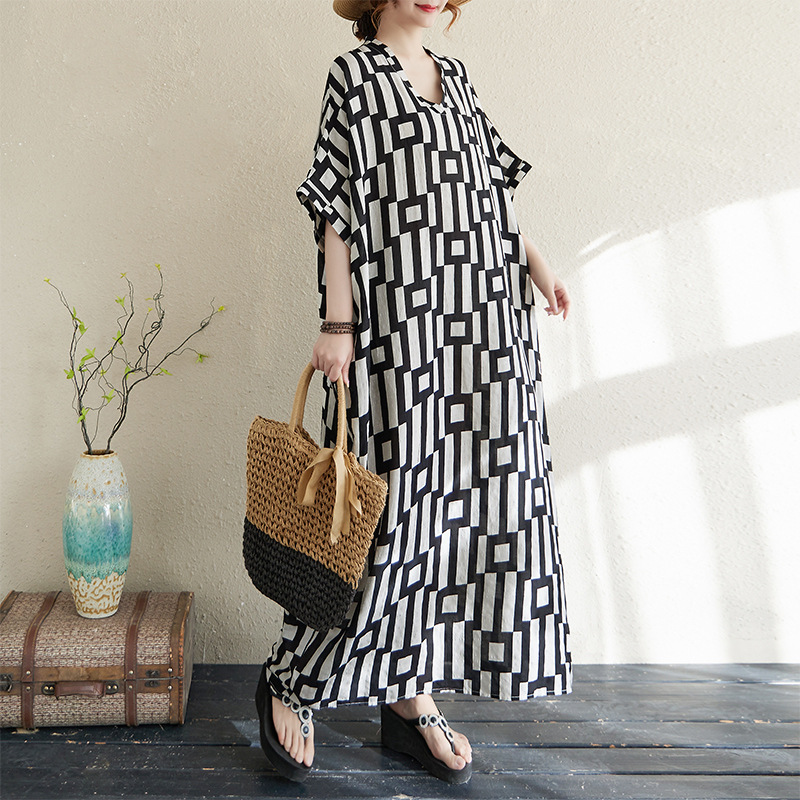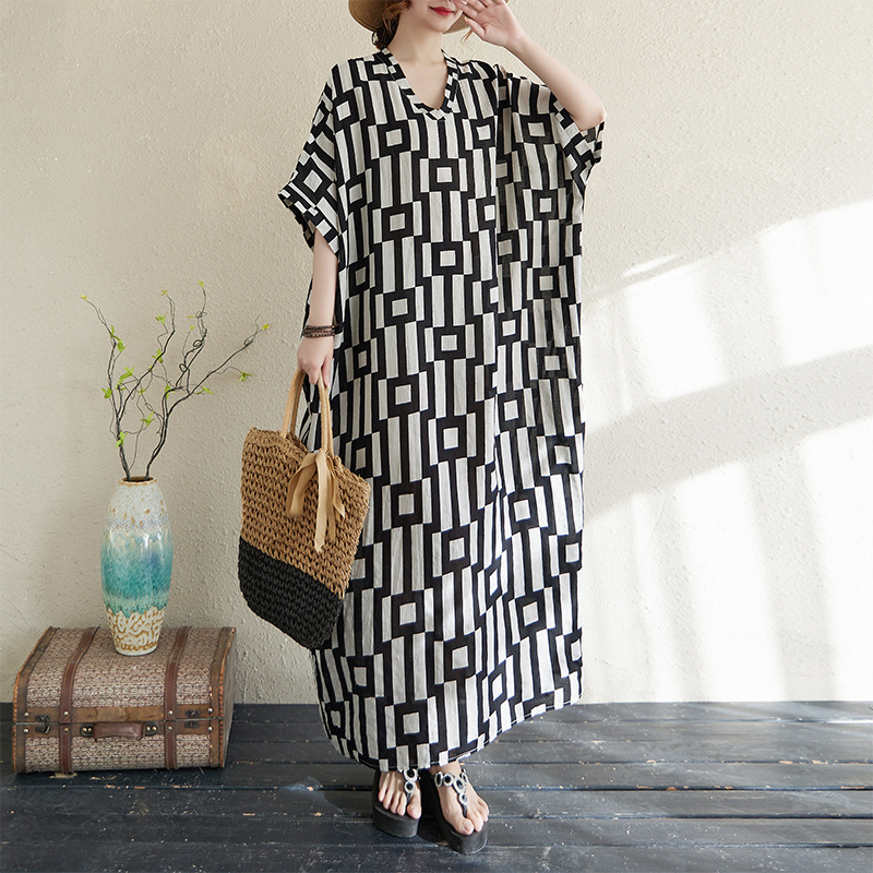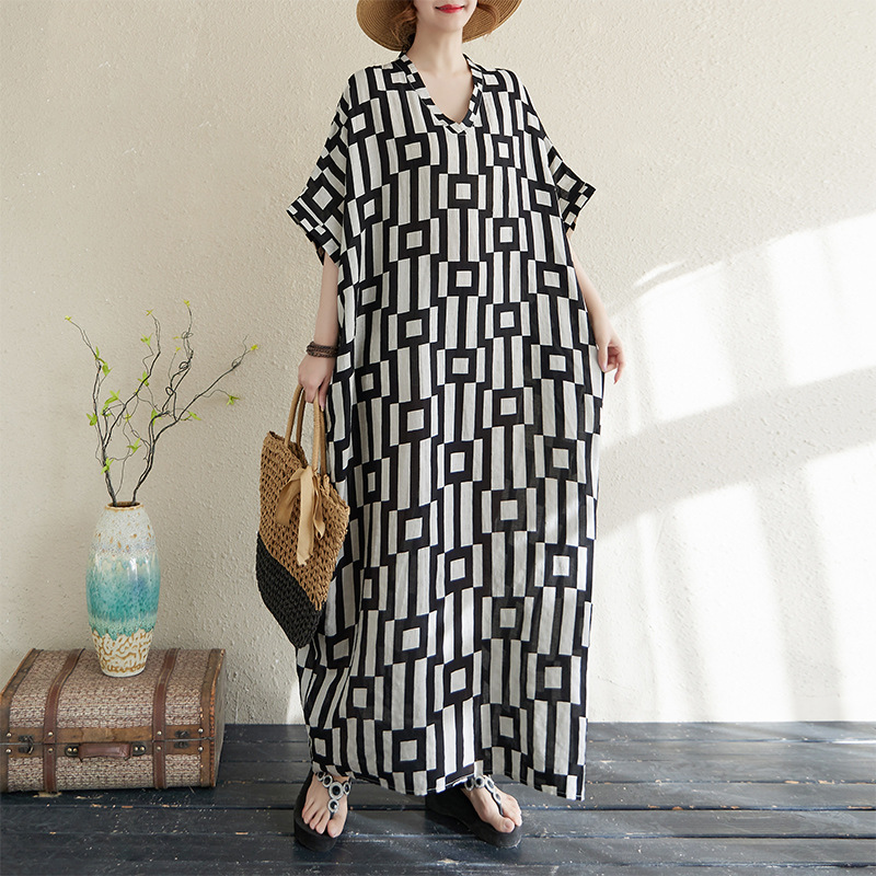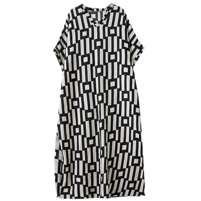 Product information: Pattern: Plaid Color: black and white plaid Waist type: wide waist Size: free size Style: pullover Main fabric components: cotton and linen