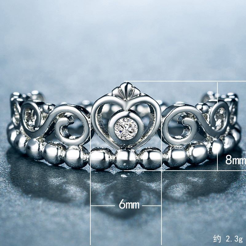 Simple Love Crown Lady Ring Beautiful copper-plated silver zircon jewelry