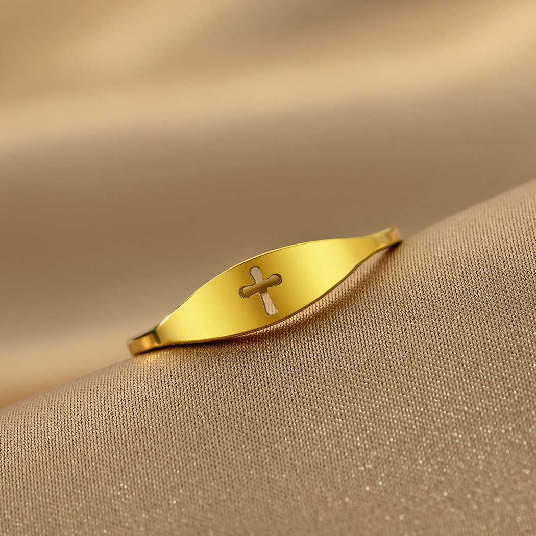 Product information:Color: gold, steel Material: Stainless steel Pattern: Cross Category: Ring Size: adjustable opening