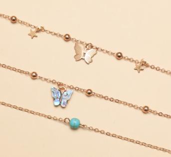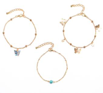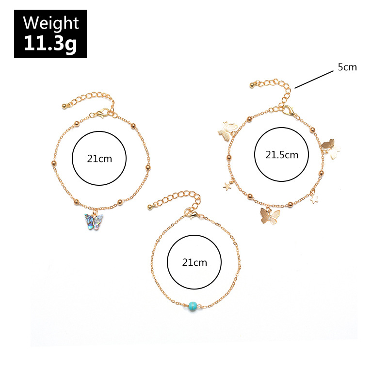 Material: AlloyTreatment process: electroplatingType: AnkletStyle: WomenShape: ButterflyPackaging: independent packagingSuitable for gift giving occasions: wedding ceremony, travel souvenir, employee welfare