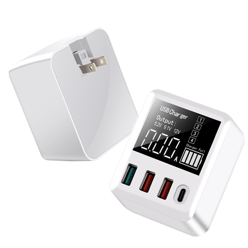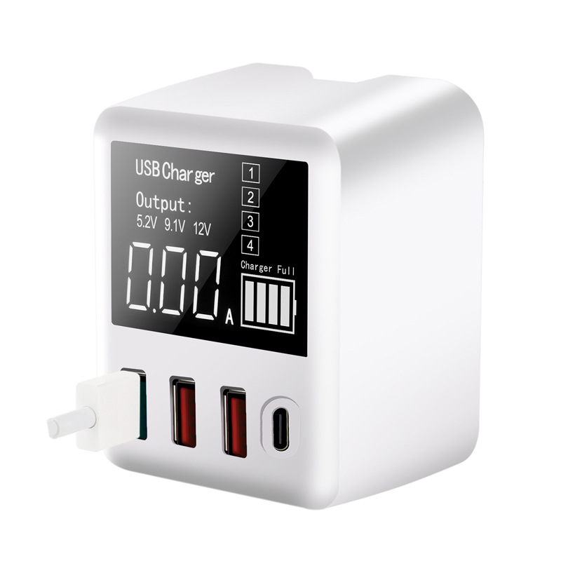 Product name: 4USB/QC3.0 intelligent charger with display. Product Model: A9T. LCD screen display: voltage and current display. Input voltage: 100-240V AC. Output current: 6A. Output power: 30W. QC3.0 output voltage: 5V/9V/12V. QC3.0 output power: 3.6A/2A/1.5A. Automatic identification: automatic identification of voltage and current according to the equipment.