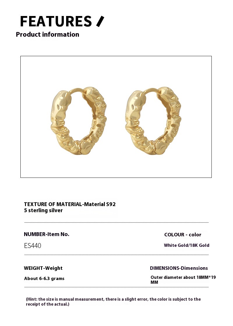 Product information:Treatment Process: Electroplating Color: platinum, goldMaterial: Silver Purity: 925 silver Shape: Geometry Popular elements: folding, irregular