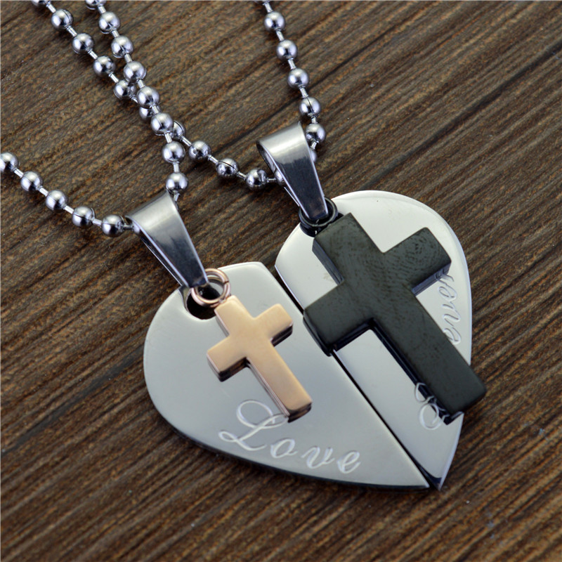 Style: Fashion OLMaterial: titanium steelTreatment process: baking varnishType: NecklaceStyle: Couple styleShape: Heart-shaped