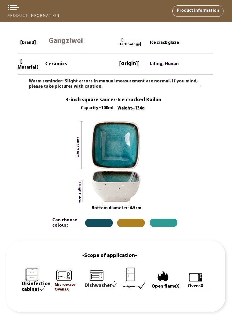 Product information:Color: 3-inch square sauce dish-ice crack kaolu, 3-inch square sauce dish-ice crack kaolu, 3-inch square sauce dish-ice crack kaoluStyle type: simple styleMaterial: porcelainStyle: AmericanShape: Square