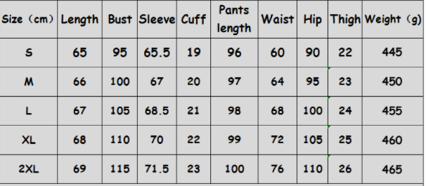 Size: S, M, L, XL, XXL Unit: cm