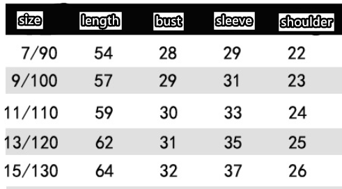 Suitable height: size 7/90cm, size 9/100cm, size 11/110cm, size 13/120cm, size 15/130cm, size 7-15