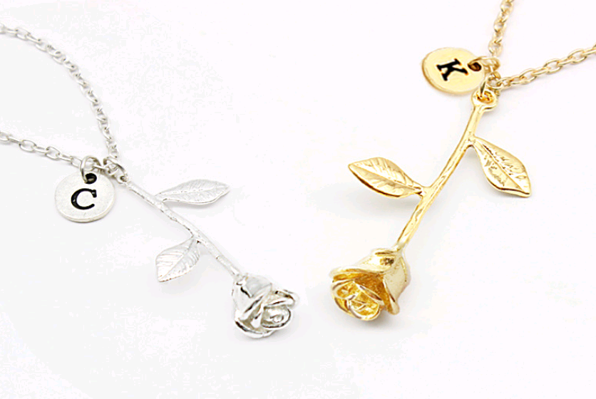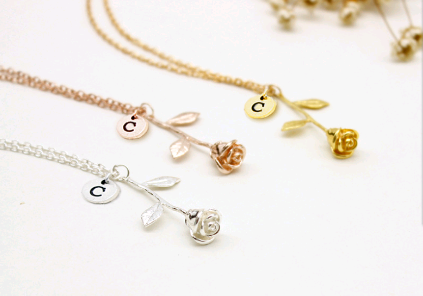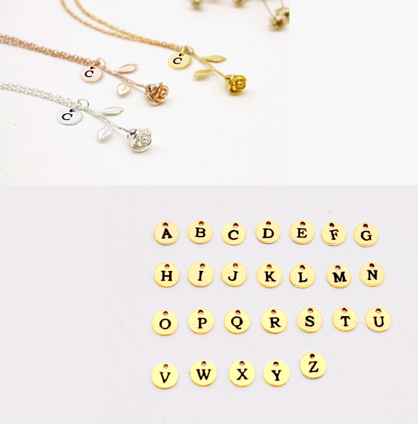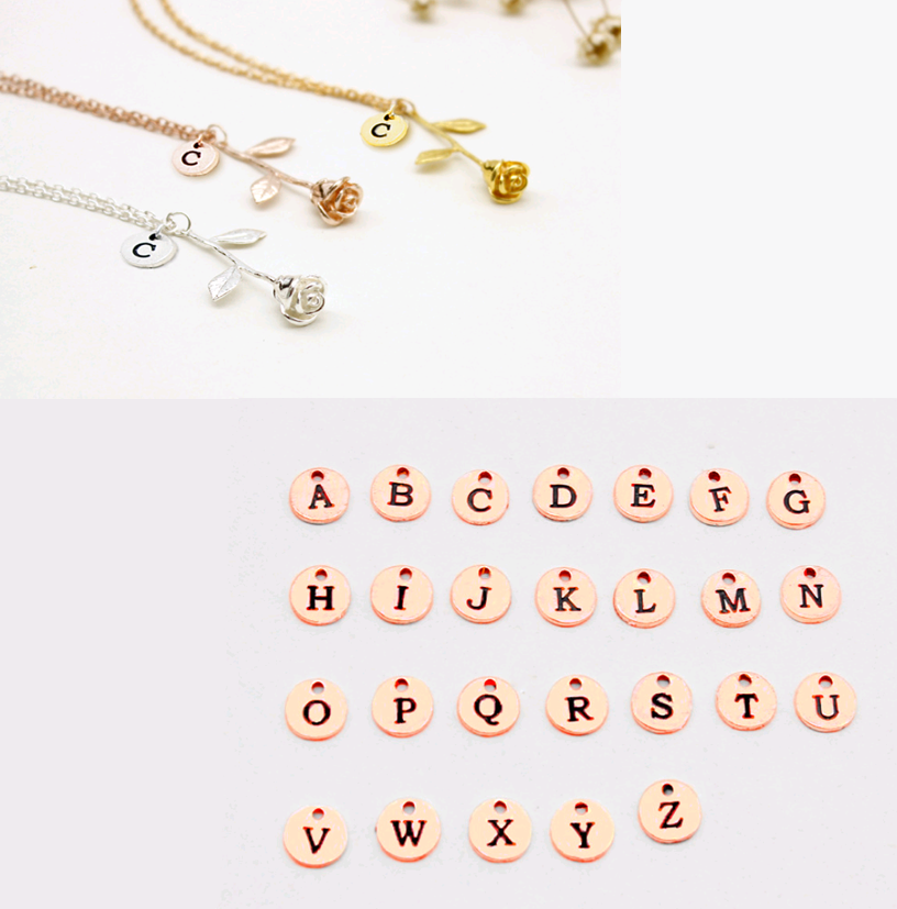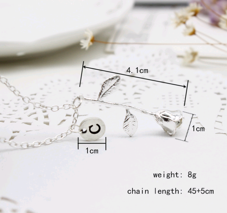 26 English Letter Roses Exquisite Pendant Necklace Birthday Gift Necklace