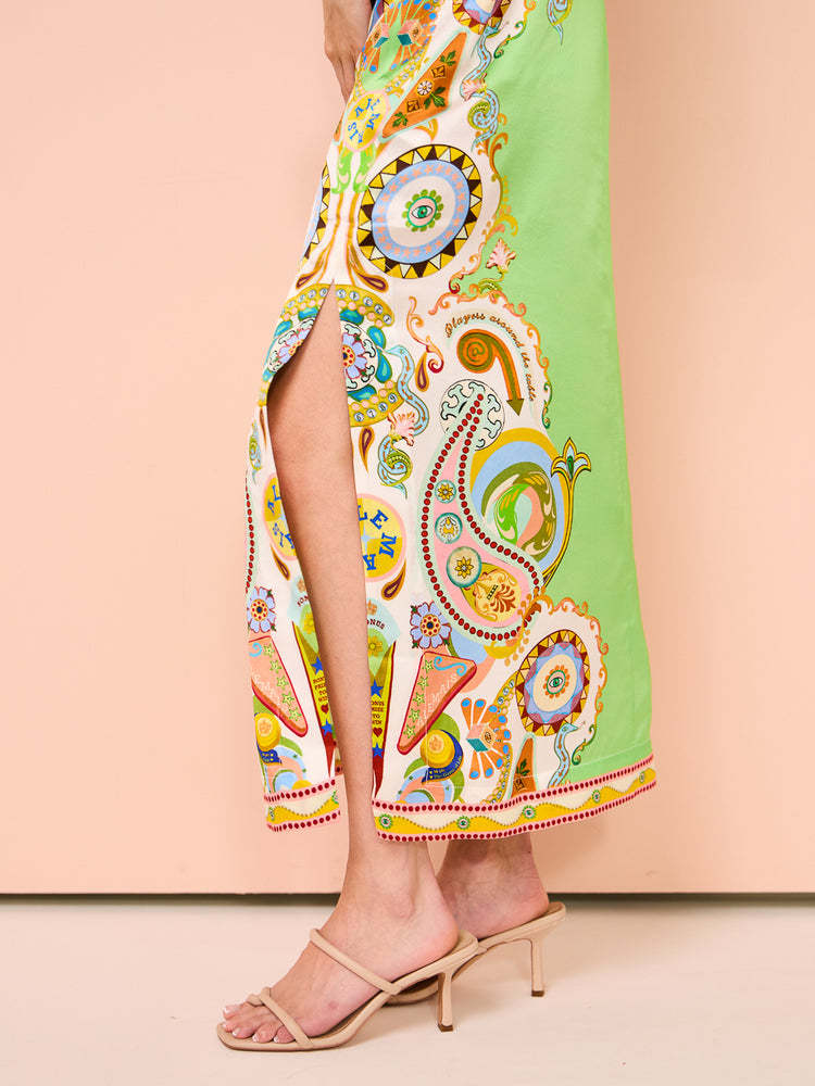 Product information: Fabric name: Satin Color: Picture color Main fabric composition: Polyester Size: S,M,L,XL Skirt Category: Dress Style: European and American style Process: Printing